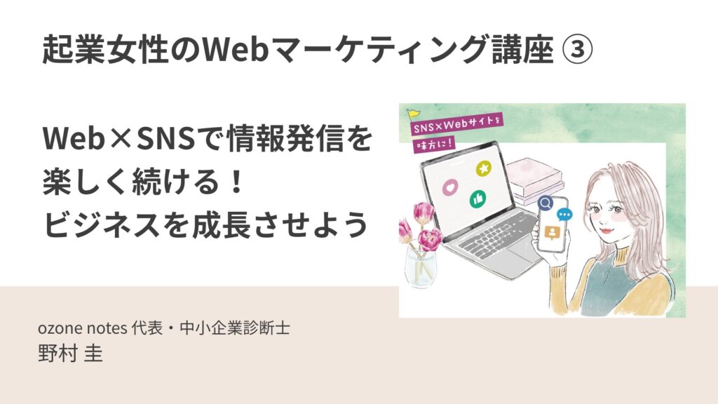 | タイトル | SNS×Webサイトを味方に!『起業女性のWebマーケティング講座』 |