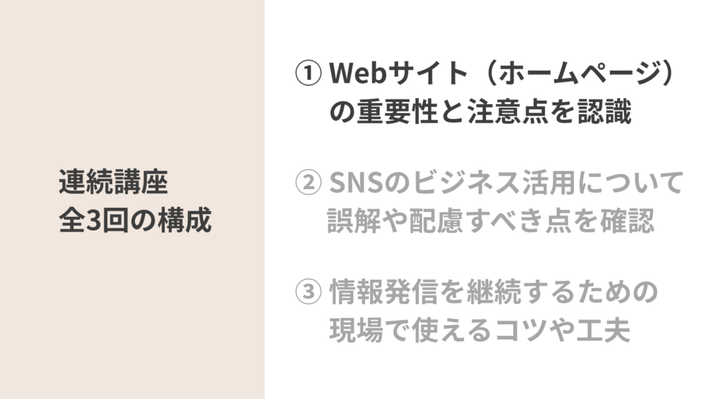全3回を通して、WebサイトとSNSをどのように活用していくと良いかを整理しながらお伝えしました。