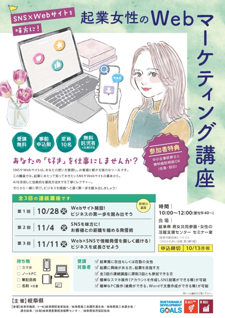 | タイトル | SNS×Webサイトを味方に!『起業女性のWebマーケティング講座』 |